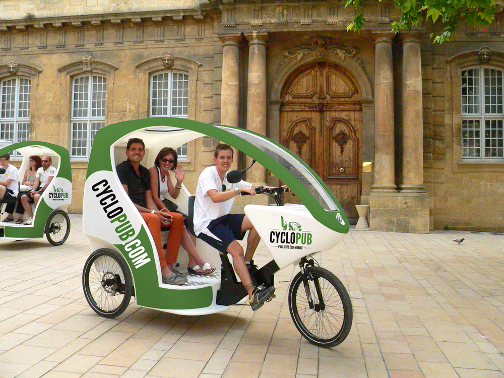 Cyclopub, société de transport écologique vous propose des balades touristiques et personnalisées dans le centre d'Aix-en-Provence.